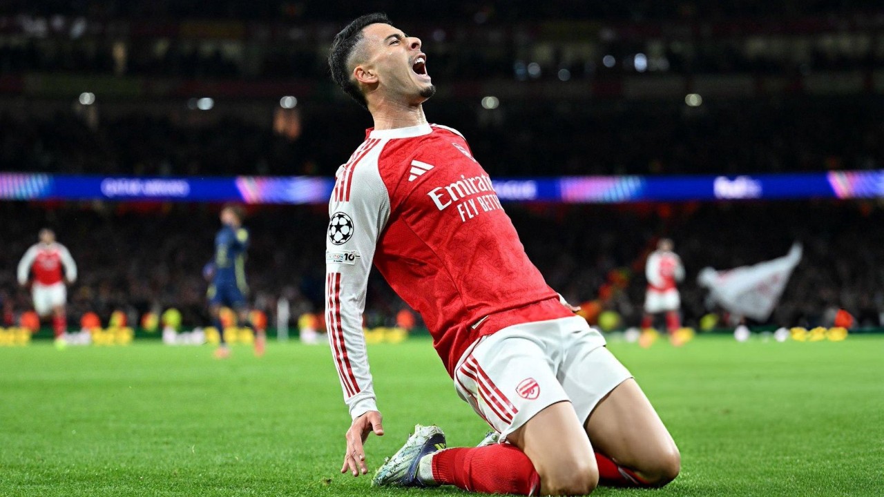 Gabriel Martinelli melakukan selebrasi saat Arsenal melawan Atletico Madrid di laga Liga Champions pada 22 Oktober 2025-@Debate_Gunner-X