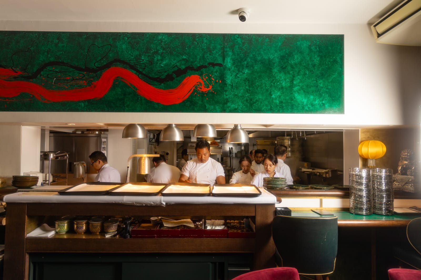 Kepala chef-nya, Marc Mantovani, akan hadir langsung untuk menyajikan hidangan andalan. Seperti kacang polong Yunnan dengan kaviar dan kepiting bunga.