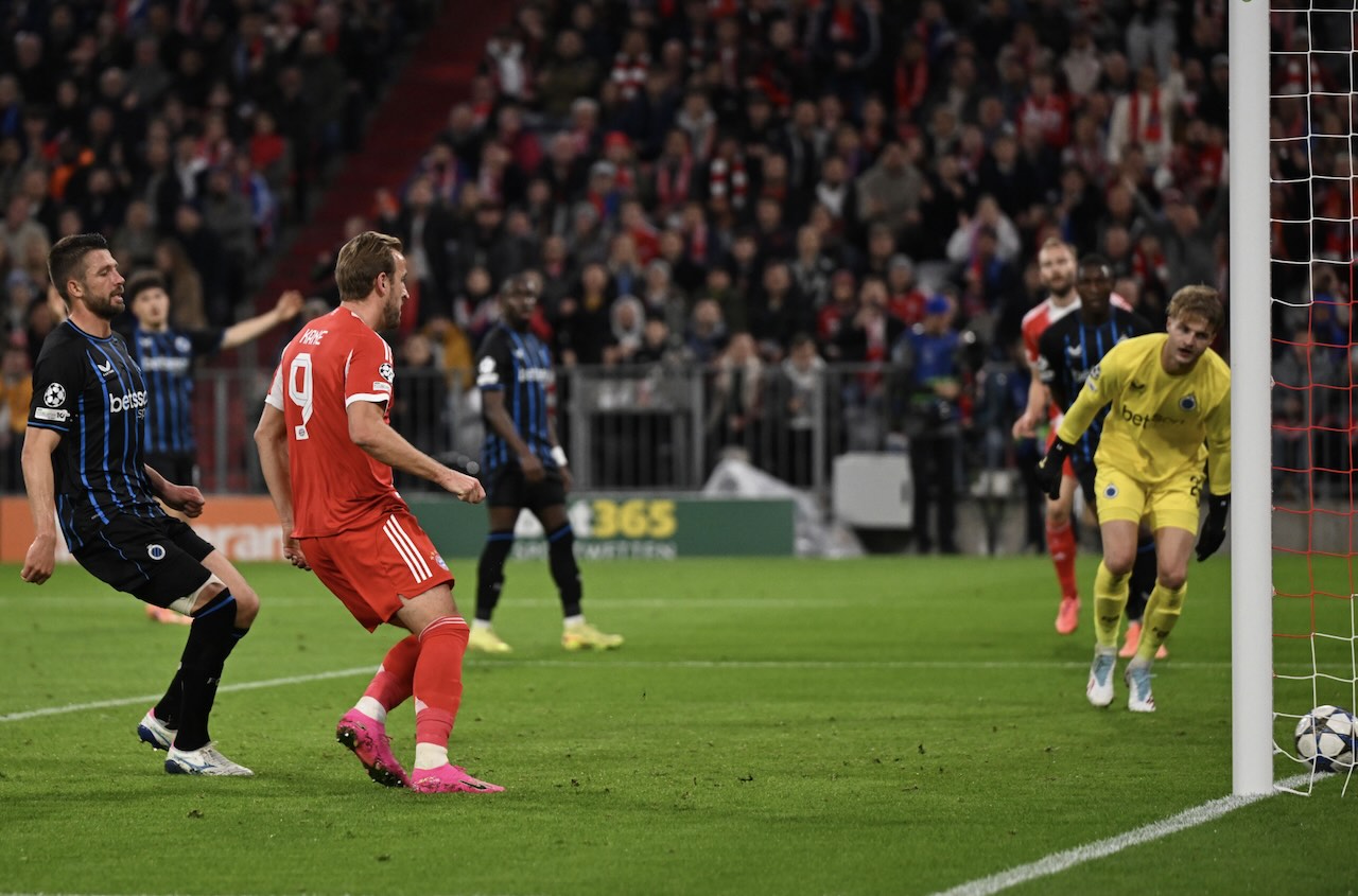 Bayern vs Club Brugge 4-0, Lennart Karl cetak rekor, Harry Kane on fire! Foto: Harry Kane mencetak gol kedua Bayern, 23 Oktober 2025. -Alexandra Beier-AFP