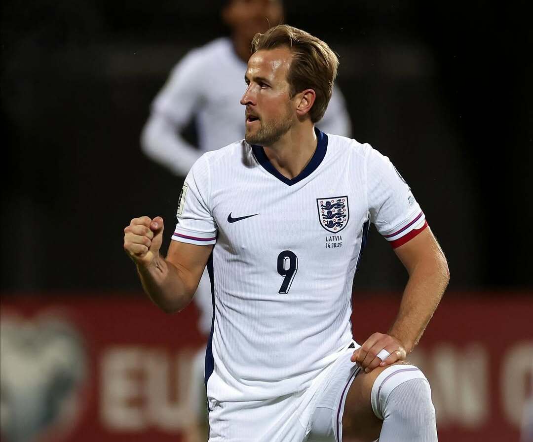 Selebrasi penyerang Timnas Inggris, Harry Kane, usai mencetak gol ke gawang Latvia. Rabu, 15 Oktober 2025--instagram @england