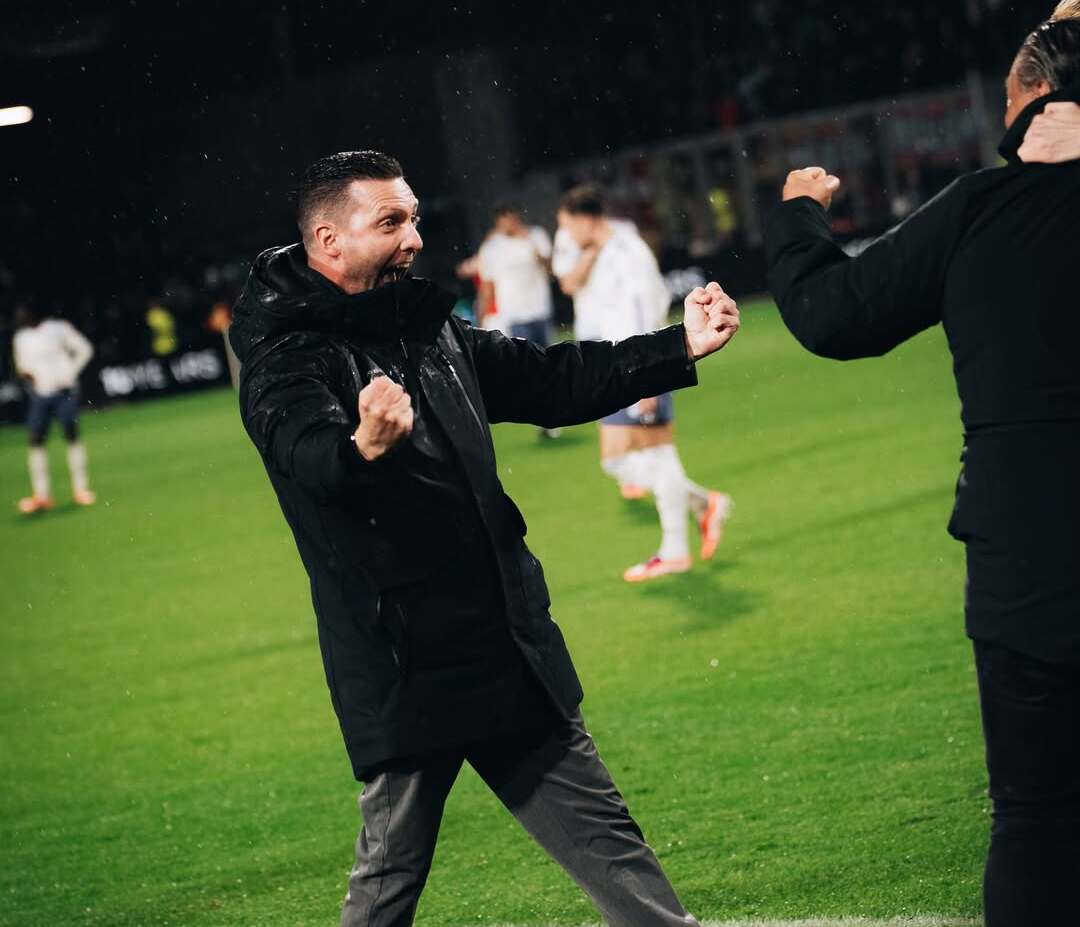 Pelatih Go Ahead Eagles, Melvin Boel, meluapkan kegembiraan usai timnya mengalahkan Aston Villa. Kamis, 23 Oktober 2025.--Instagram @gaeagles