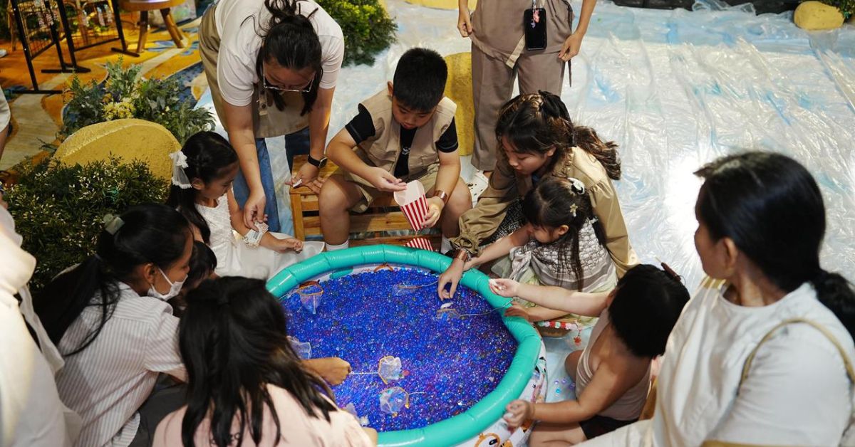 ANAK-ANAK bisa memancing di area Fishing Waterfall. -- Legacy Ballroom