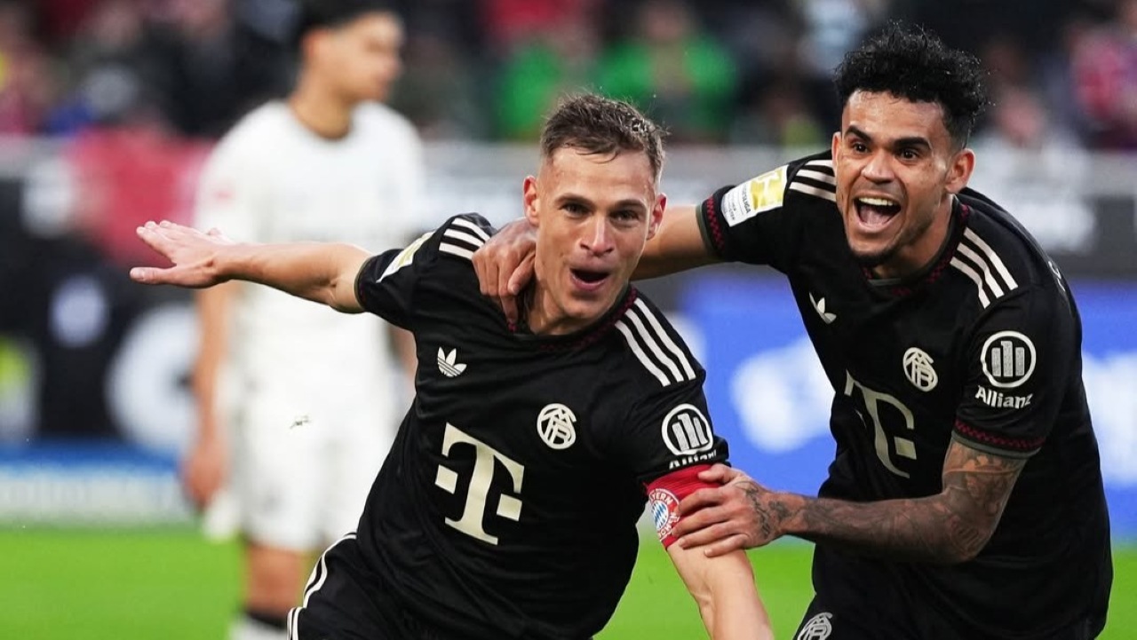 Joshua Kimmich dan Luis Diaz melakukan selebrasi saat Bayern Munchen melawan Borrusia Monchengladbach di pekan kedelapan Bundesliga pada 25 Oktober 2025-@FCBayernEN-X