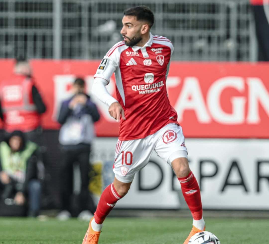 Aksi gelandang Stade Brestois, Romain Del Castillo, dalam laga kontra PSG di Ligue 1. Sabtu, 25 Oktober 2025.--Instagram @stadebrestois29