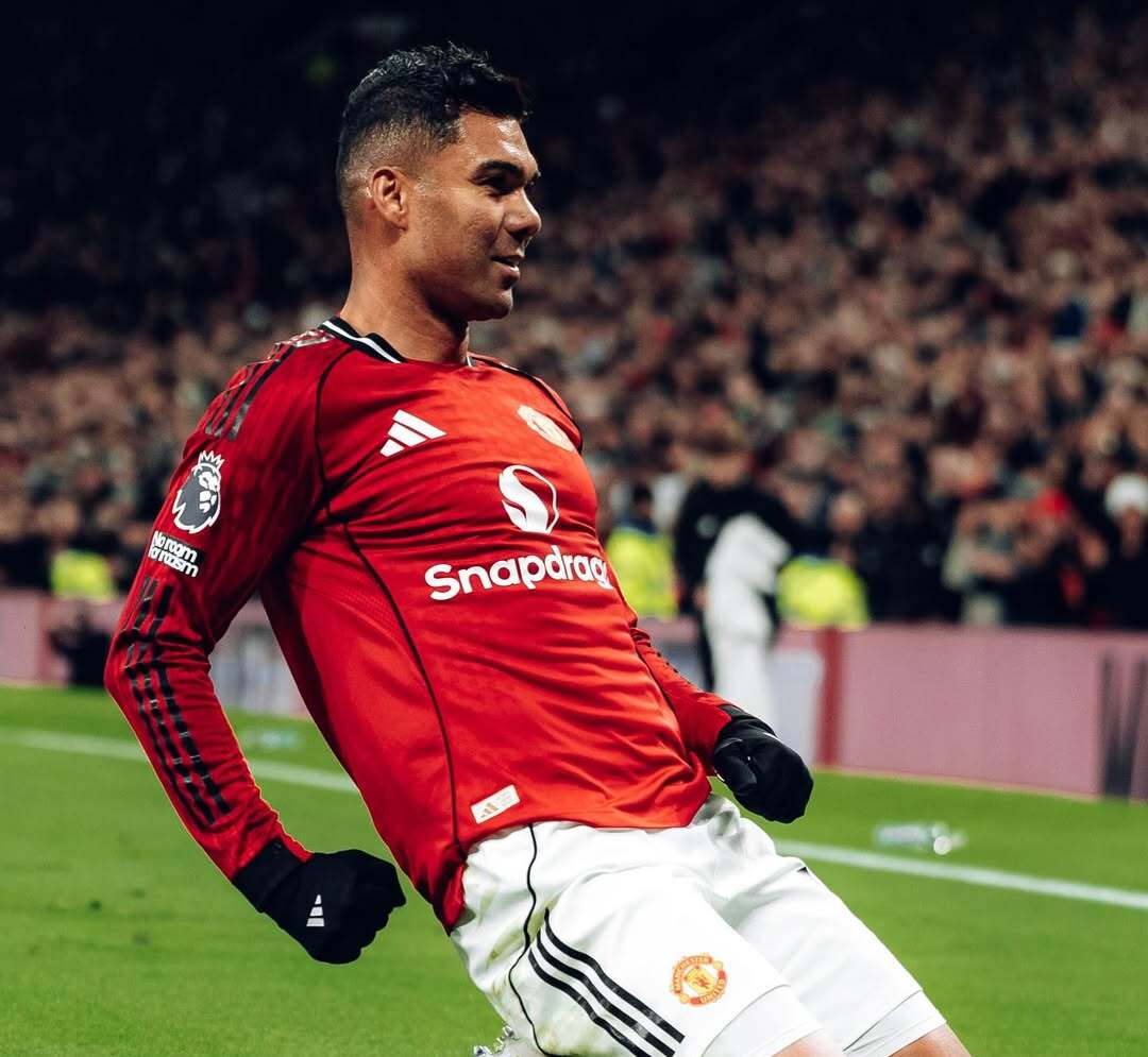 Selebrasi gelandang Manchester United, Casemiro, usai mencetak gol kedua dalam laga kontra Brighton. Sabtu, 25 Oktober 2025.--instagram @manchesterunited