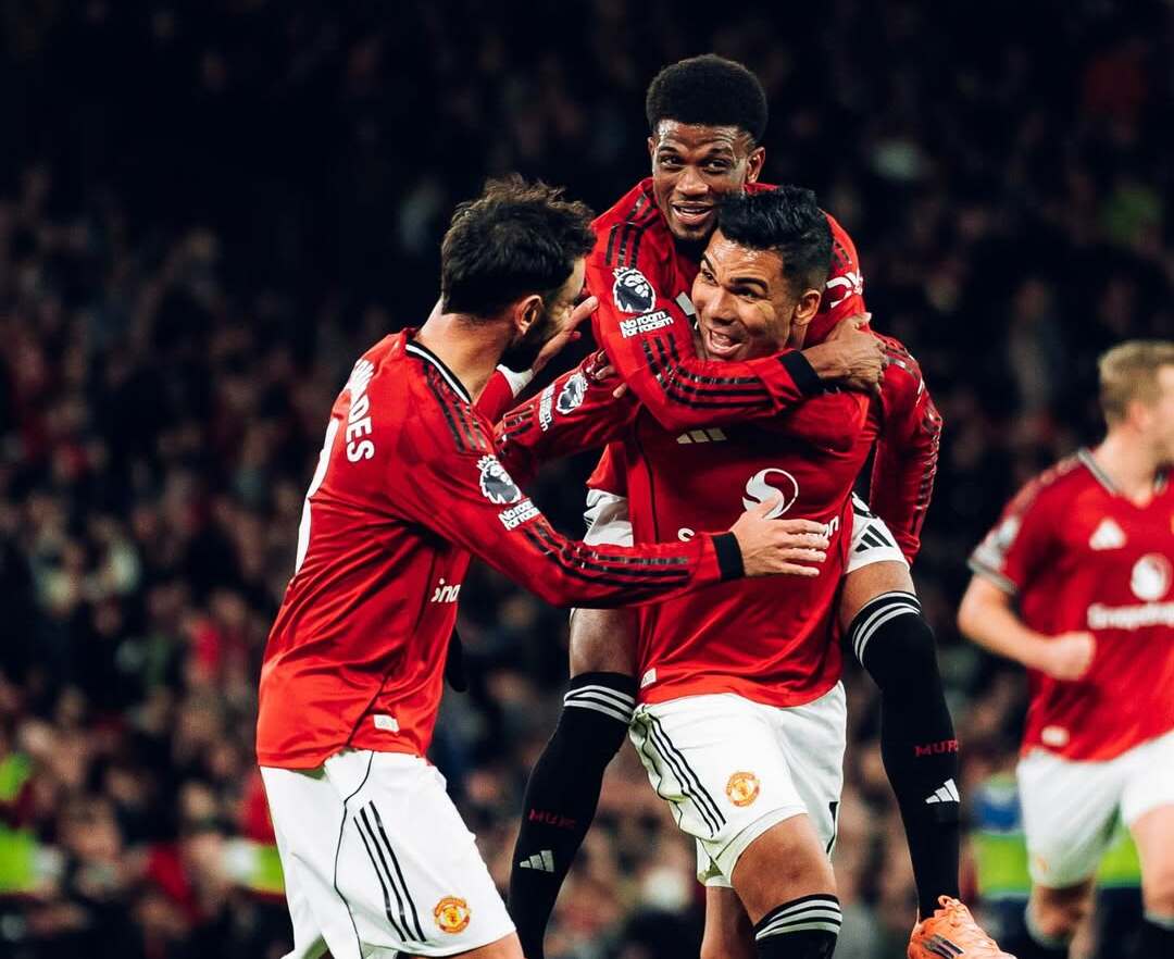 Para pemain Manchester United merayakan gol yang dicetak oleh Casemiro (tengah), dalam laga kontra Brighton. Sabtu, 25 Oktober 2025.--instagram @manchesterunited