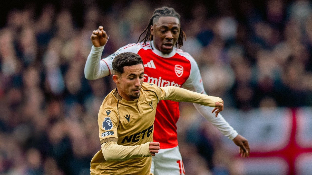 Yeremi Pino berduel dengan Eberechi Eze saat Crystal Palace melawan Arsenal di laga pekan kesembilan Premier League pada 26 Oktober 2025-@CPFC-X