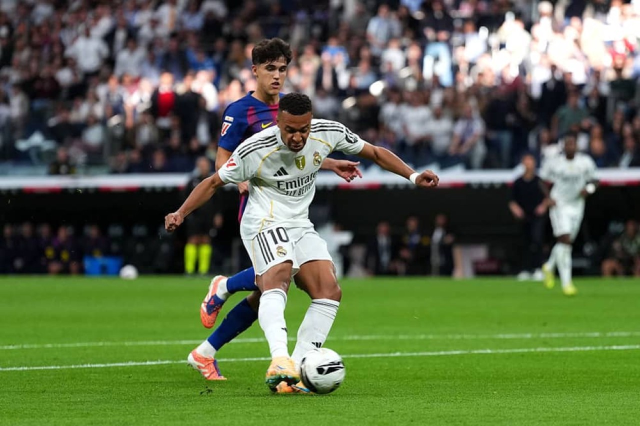 Gol Kylian Mbappe buka keunggulan bagi Real Madrid dalam laga El Clasico lawan Barcelona, lanjutan pekan kesepuluh Liga Spanyol 2025/2026, Senin 27 Oktober 2025--Getty Images