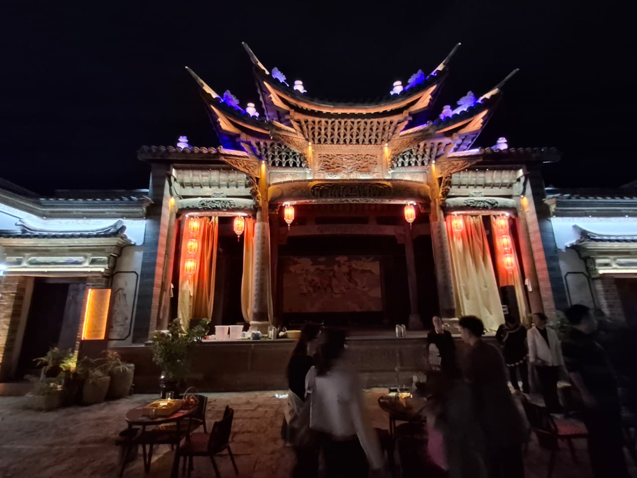 Di dalam area itu juga berdiri Jiangshan Theater (江山戏台/ Jiāngshān xìtái). Malam itu, kami beristirahat di depan teater itu. Biasanya, wisatawan bisa menonton tarian Yi, opera Sichuan (川剧/ Chuānjù), dan kadang pertunjukan modern bertema etnik.