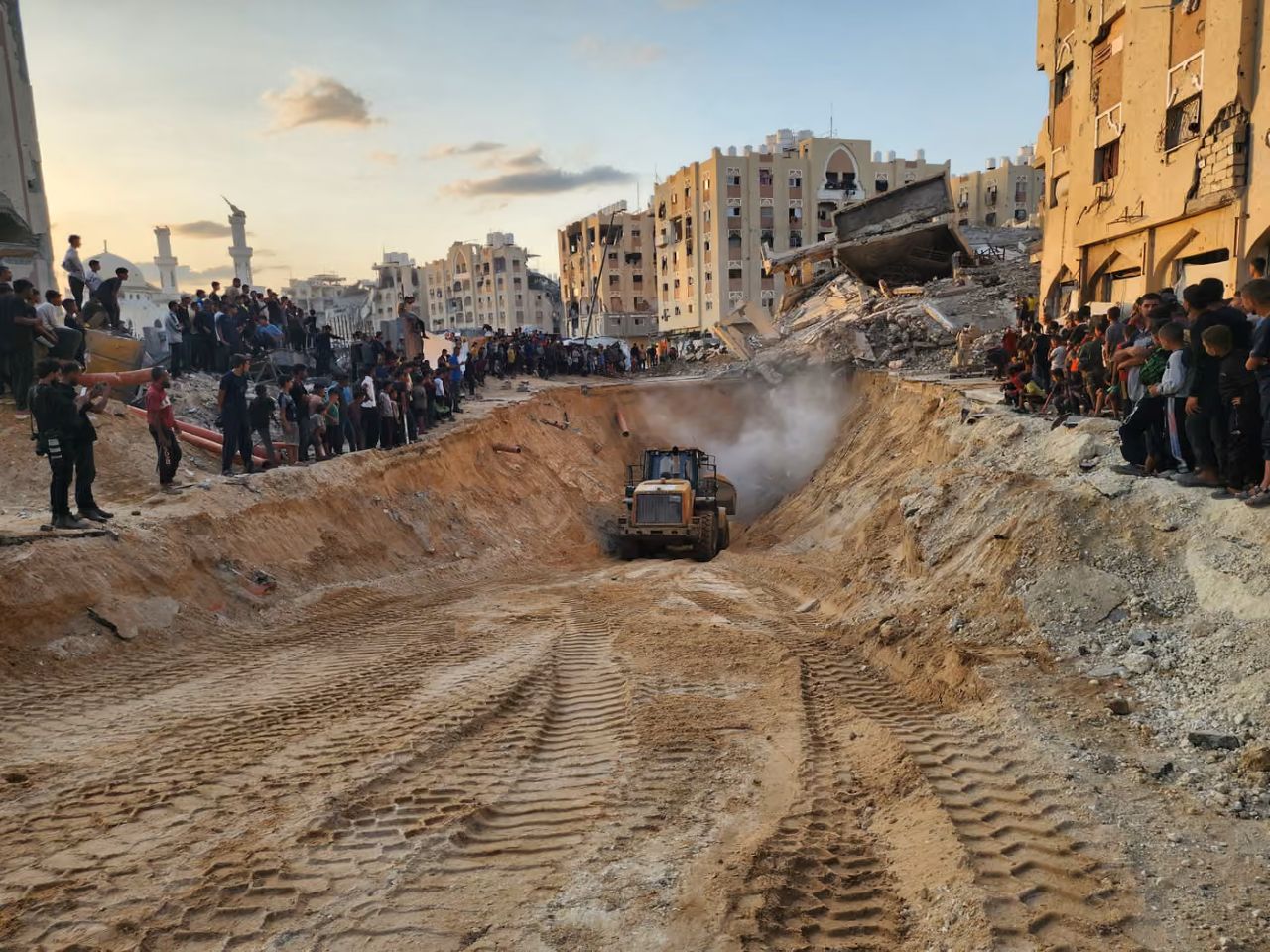 ICRC dan Hamas melakukan penggalian tanah menggunakan buldoser untuk mempercepat proses evakuasi jenazah sandera yang tersisa di Hamad, Khan Younis pada Jumat, 17 Oktober 2025.--The Guardian