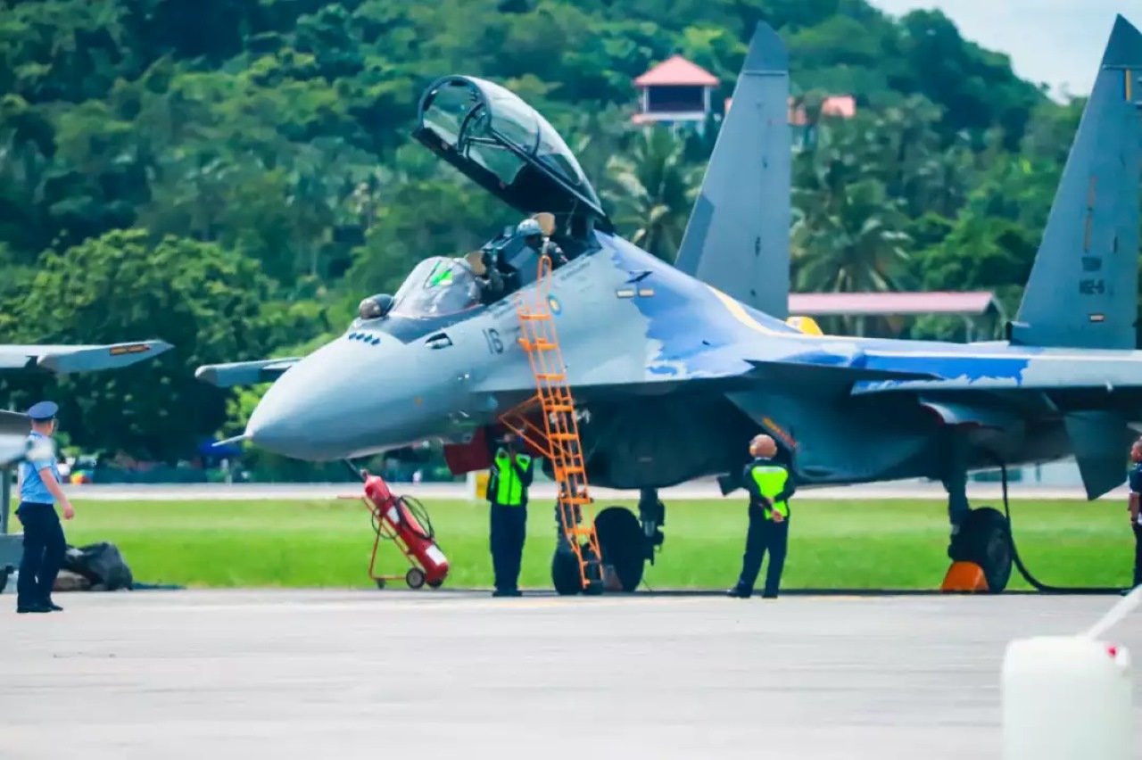 Pesawat Sukhoi SU-30 MKM dalam ajang Langkawi International Maritime and Aerospace Exhibition (LIMA) 2025, Rabu (21/5/2025).--TNI AU