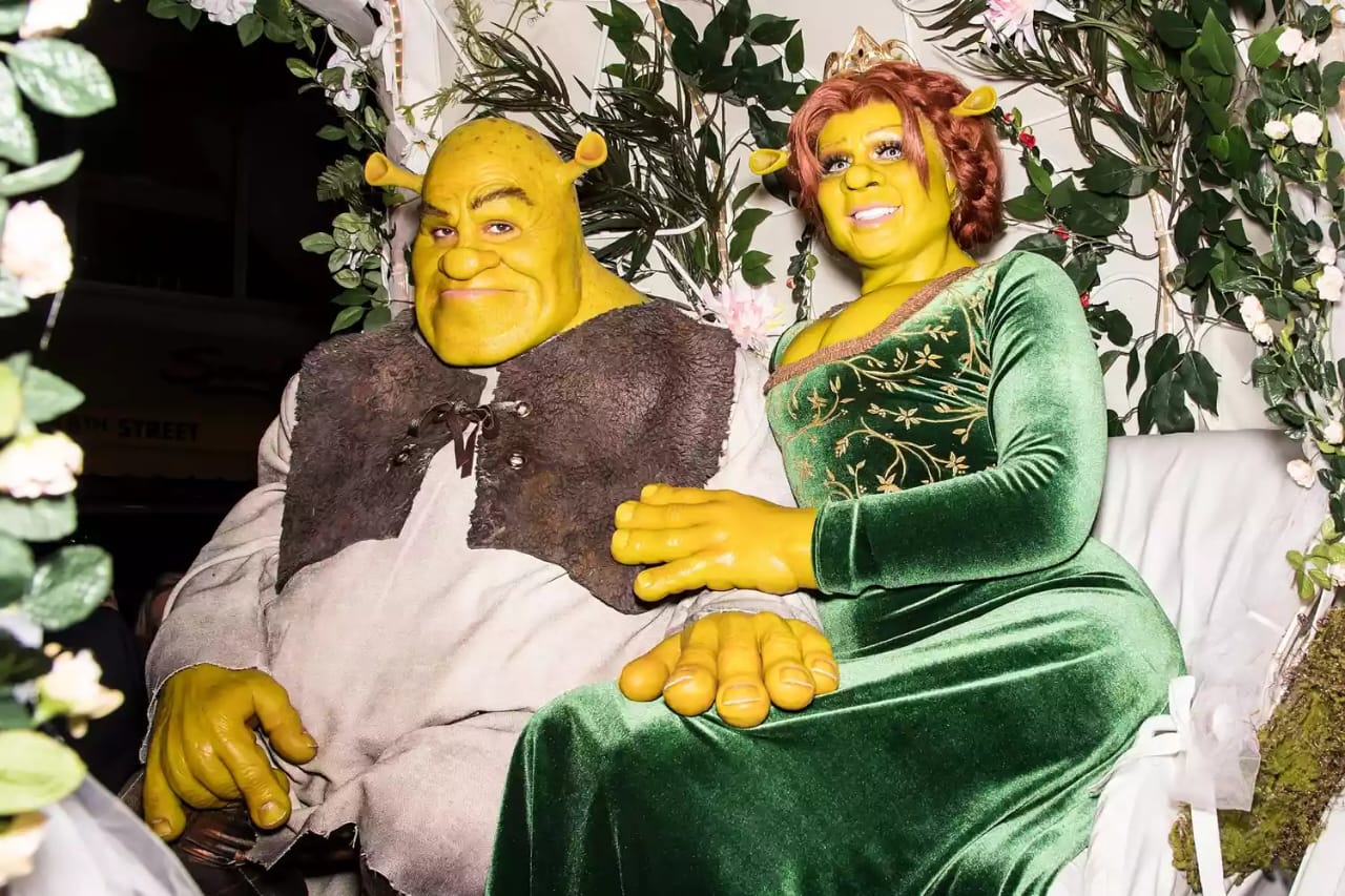 Potret Heidi Klum dan suaminya yang tampil sebagai Putri Fiona dan Shrek dalam perayaan Halloween tahunan-Gilbert Carrasquillo-GC Images