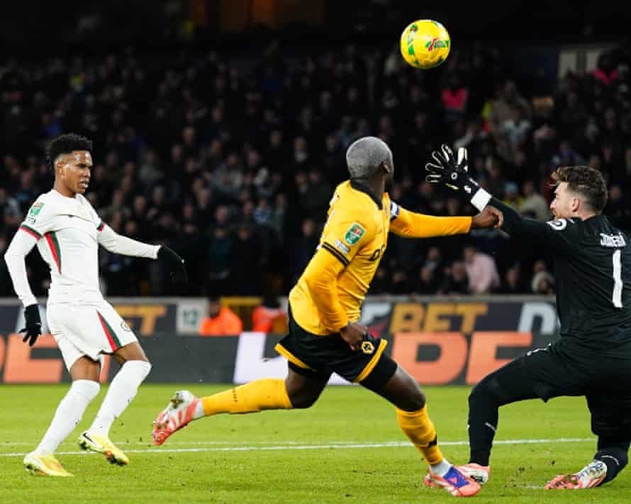 Momen Estevao mencetak gol melalui tendangan chipnya, dalam ajang Carabao Cup melawan Wolves, Kamis 30 Oktober 2025---Getty Images