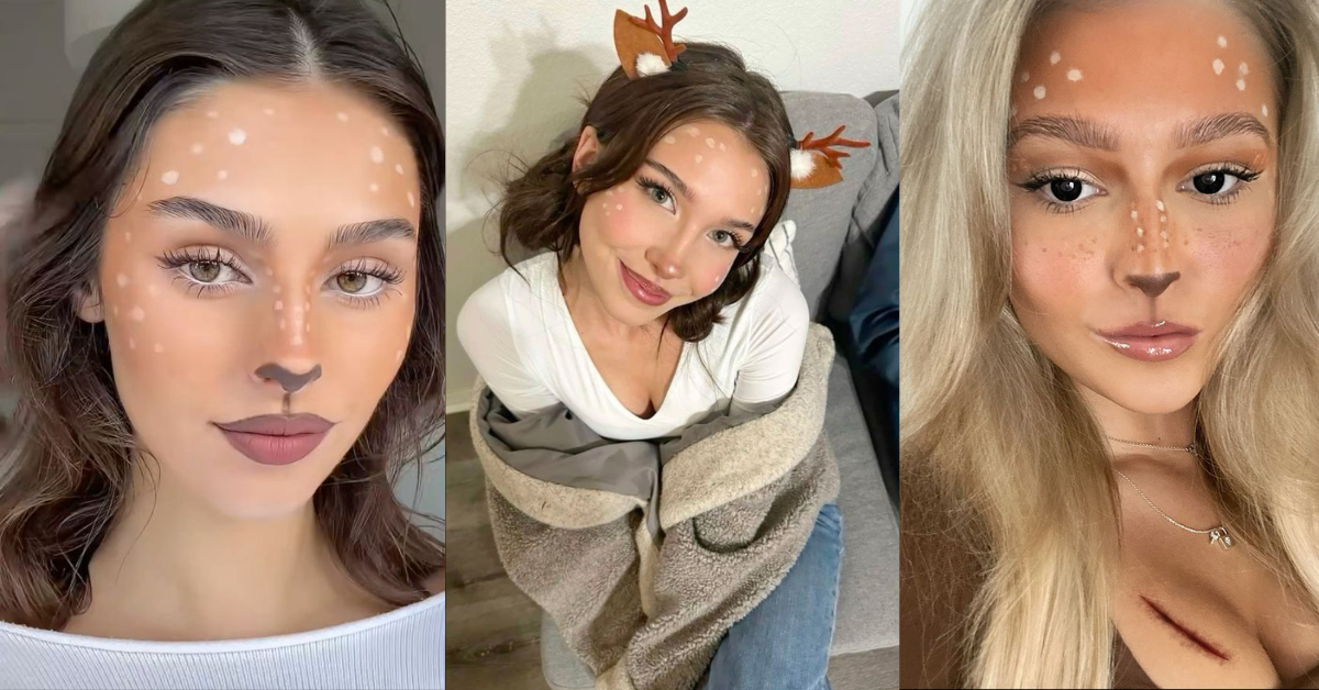 Makeup deer sering dipadukan dengan aksesori telinga rusa atau ikat kepala bertanduk. Hasilnya memberikan kesan imut, cocok untuk mereka yang tidak ingin tampil terlalu horor di malam Halloween.