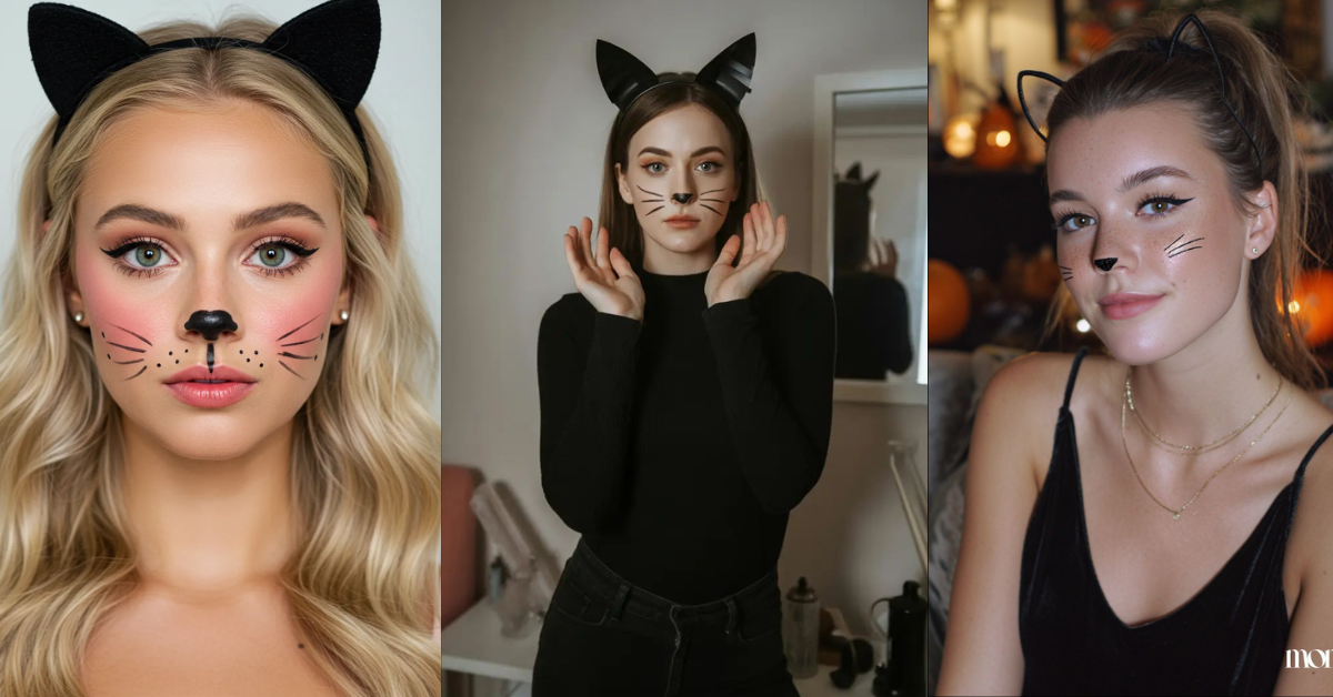 Makeup kucing termasuk salah satu yang paling mudah dibuat. Hanya dengan eyeliner hitam untuk membuat garis kumis, hidung kecil berbentuk segitiga, dan lipstik lembut, tampilan sudah menyerupai kucing.