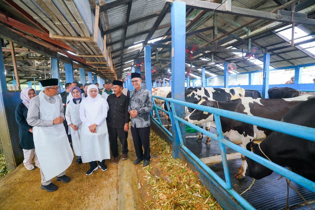 Kurangi Impor Susu, Khofifah Tinjau Peternakan Sapi Perah Terpadu di Nongkojajar