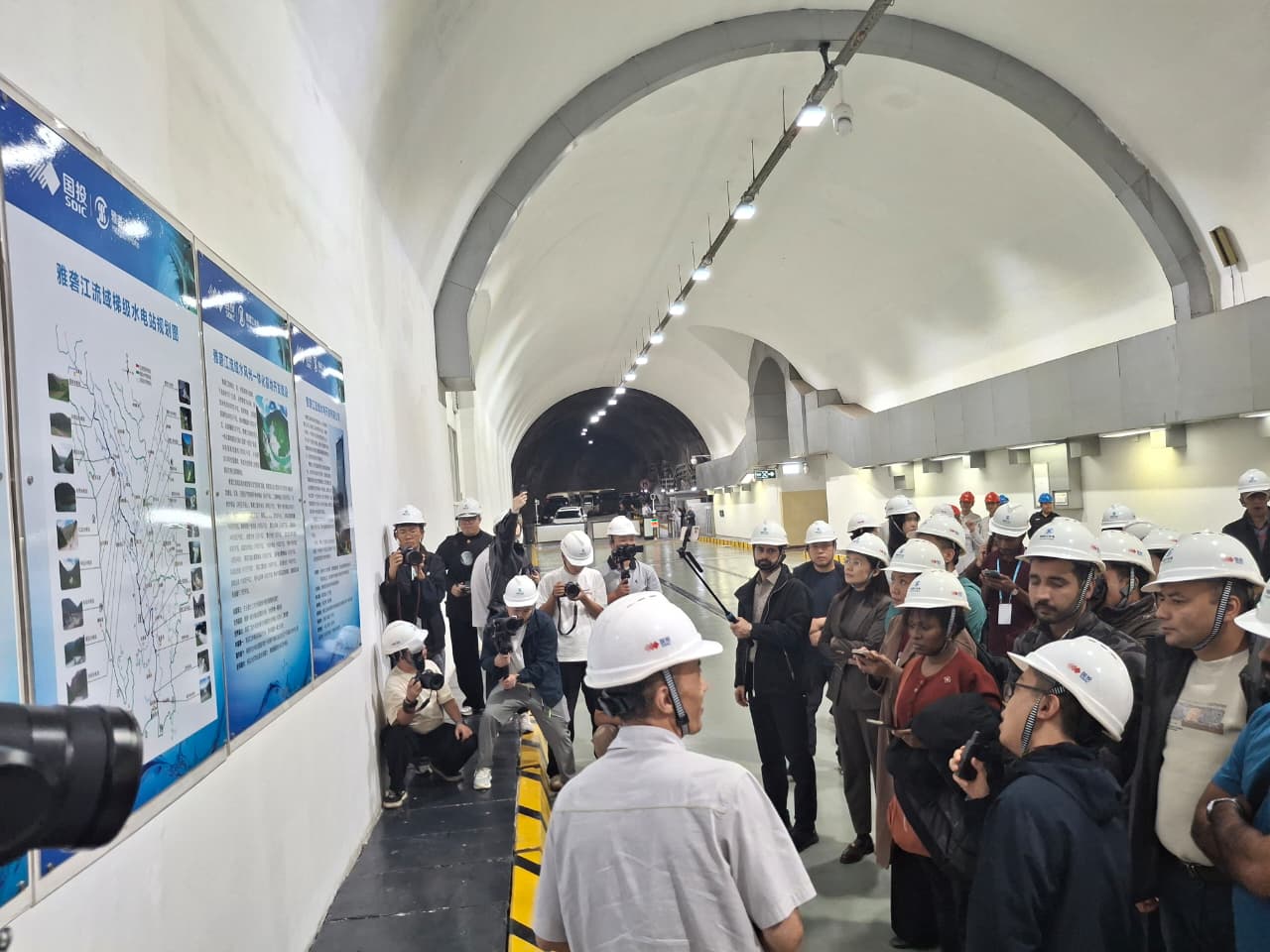 DISKUSI tentang sejarah dam Ertan yang dilakukan di kedalaman sekitar 800 meter di bawah puncak gunung.-Doan Widhiandono-