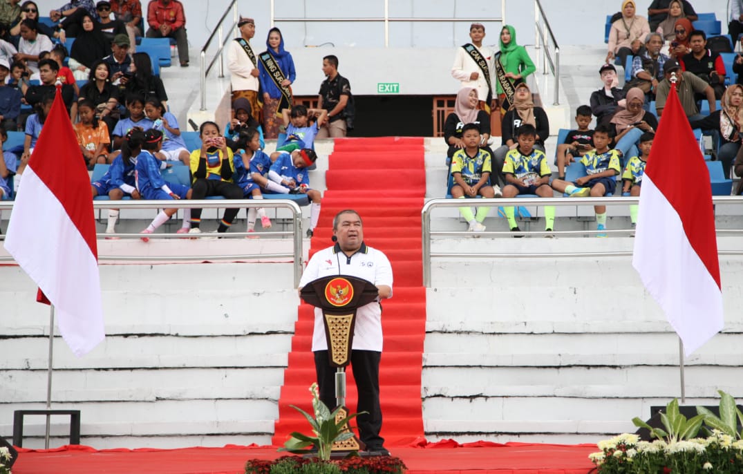 Kepala Disbudporapar Surabaya, Hidayat Syah, saat memberi sambutan di pembukaan Liga 4 Nasional, Kamis, 30 Oktober 2025-Sugeng Deas-Liga 4 Piala Walikota Surabaya 2025