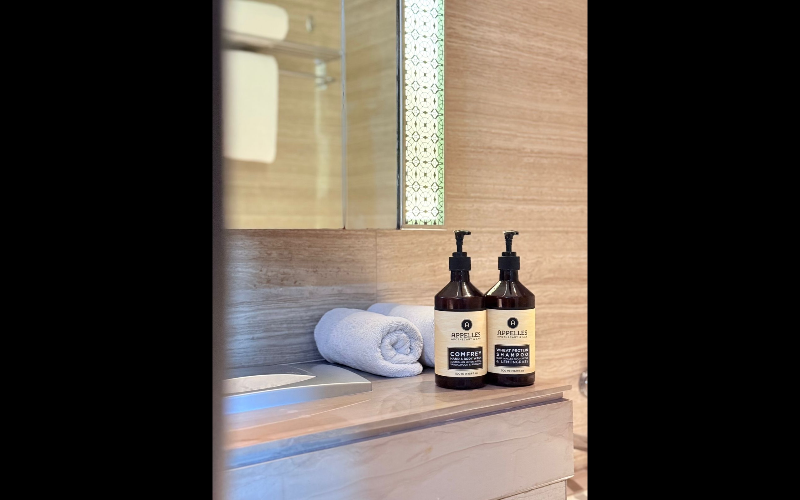 Sabun, sampo, dan kondisioner di Ascott Waterplace Surabaya dibuat dari bahan alami. Sebagai bentuk komitmen terhadap lingkungan dan keberlanjutan.-Ascott Waterplace-