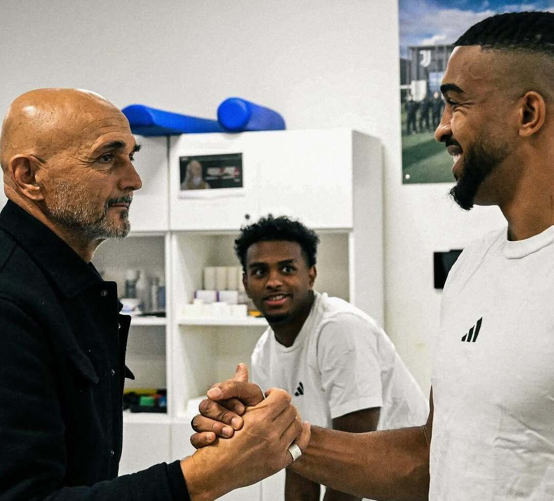 Luciano Spalletti ketika menyapa dua bek Juventus, Gleison Bremer (kanan) dan Juan Cabal (tengah). --Instagram @Juventus