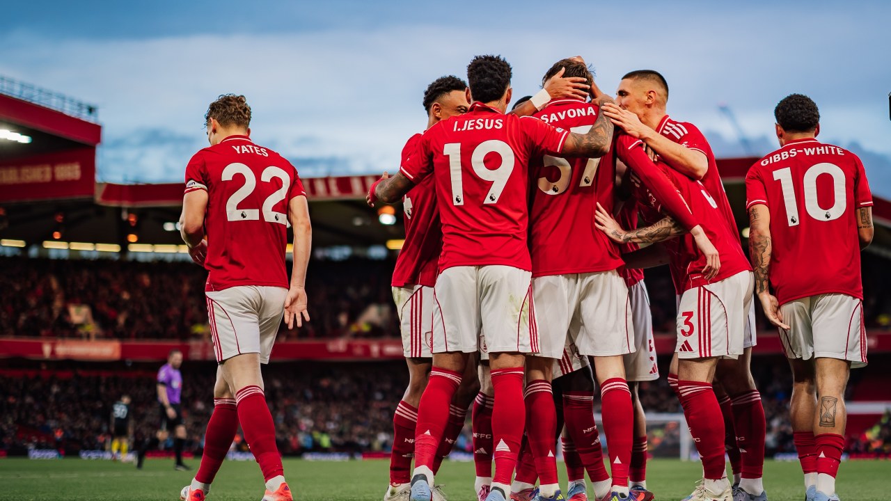 Para pemain Nottingham Forest berselebrasi saat melawan Man United di laga Premier League pada 1 November 2025-@NFFC-X