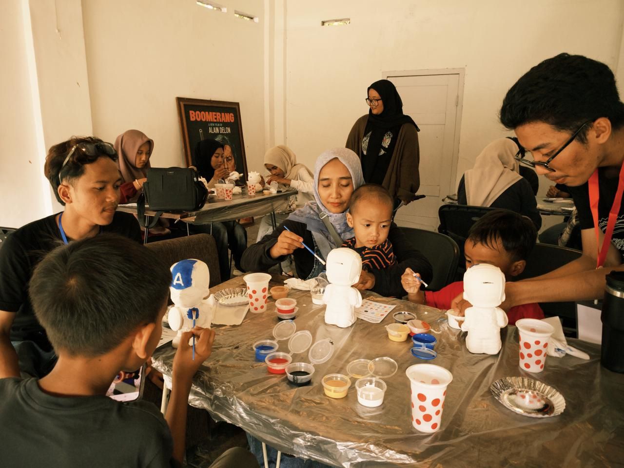 WORKSHOP mengecat patung gypsum pada Minggu, 2 November 2025, mewarnai perhelatan Sidoarjo in flux: Lintasan & Pertemuan di Rumah Budaya Malik Ibrahim.-Rumah Budaya Malik Ibrahim untuk Harian Disway-