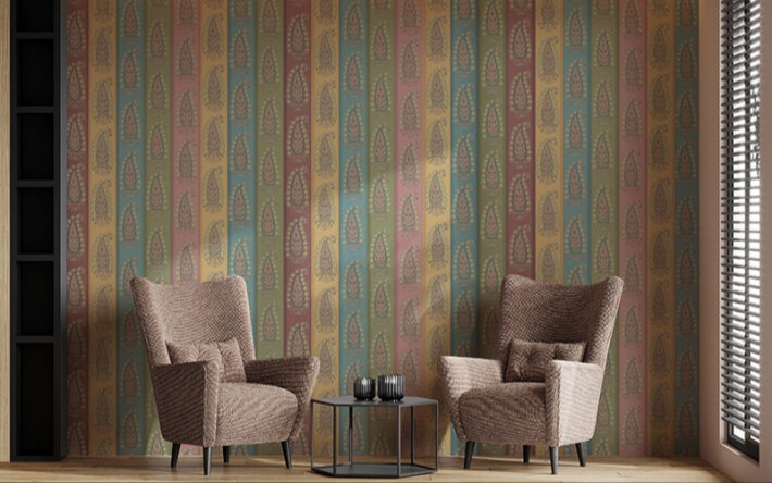 FABRIC wallpaper menghadirkan kesan elegan dan mewah pada ruangan. --Indian Decor