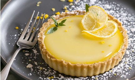 Perpaduan rasa asam segar dari lemon dan manis lembut dari adonan tart. Itu menciptakan sensasi yang seimbang di lidah.