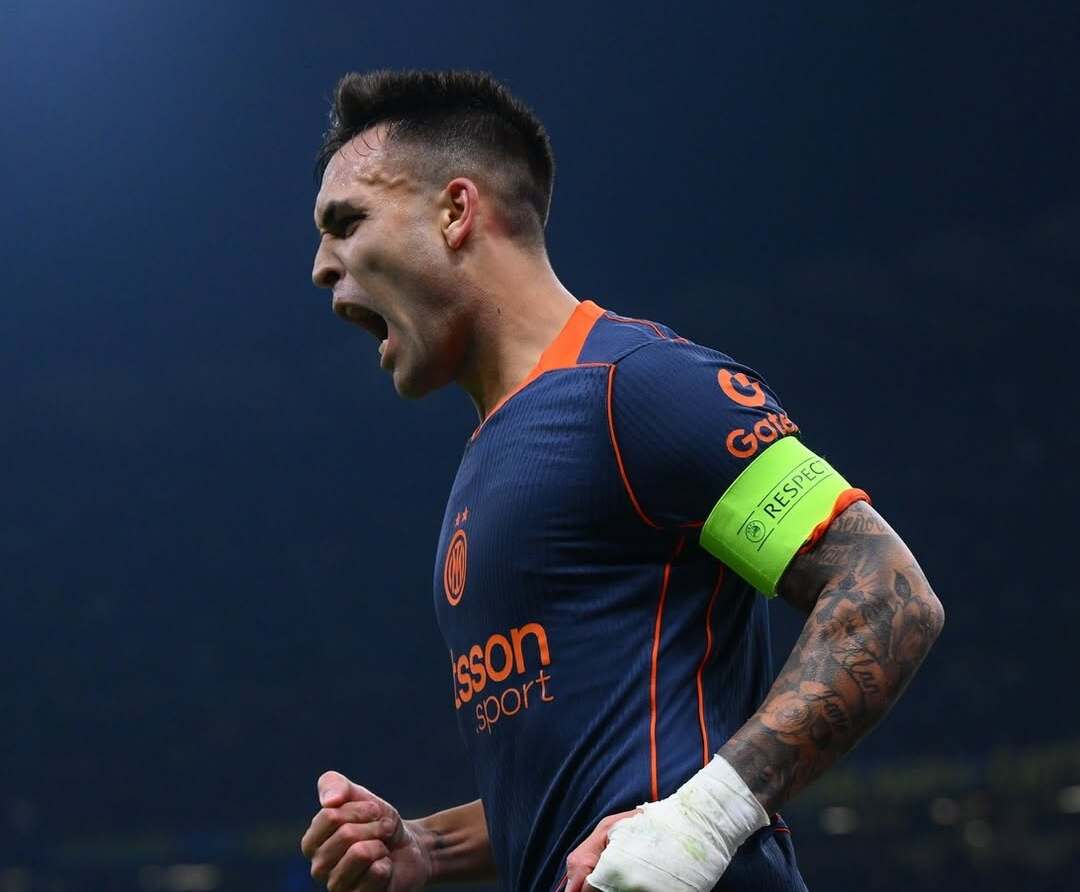 Penyerang sekaligus kapten Inter Milan, Lautaro Martinez, meluapkan kegembiraan usai mencetak gol ke gawang Kairat Almaty. Kamis, 6 November 2025--Instagram @inter