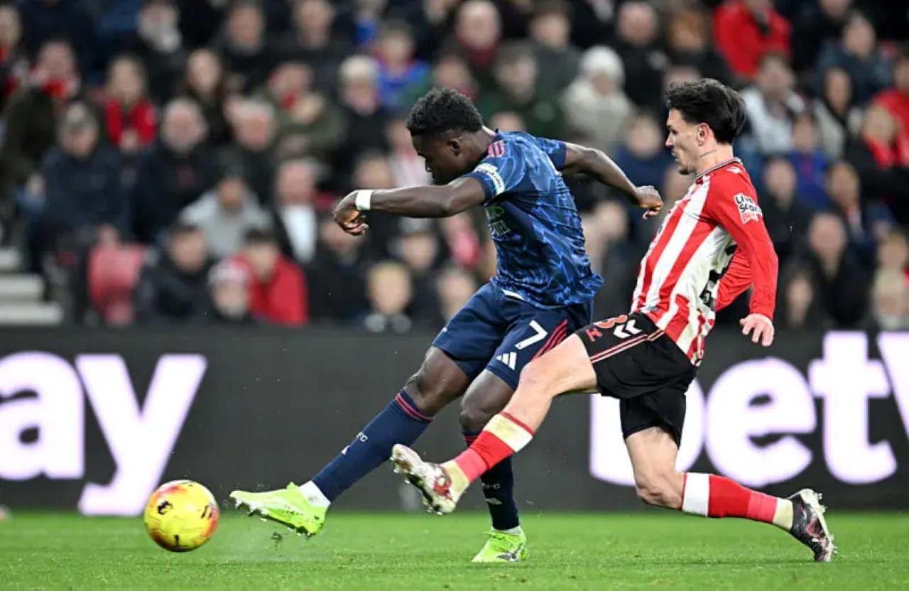 Gol Bukayo Saka samakan kedudukan Arsenal dan Sunderland 1-1 dalam laga lanjutan Liga Inggris 2025/2026, Minggu 9 November 2025--Getty Images