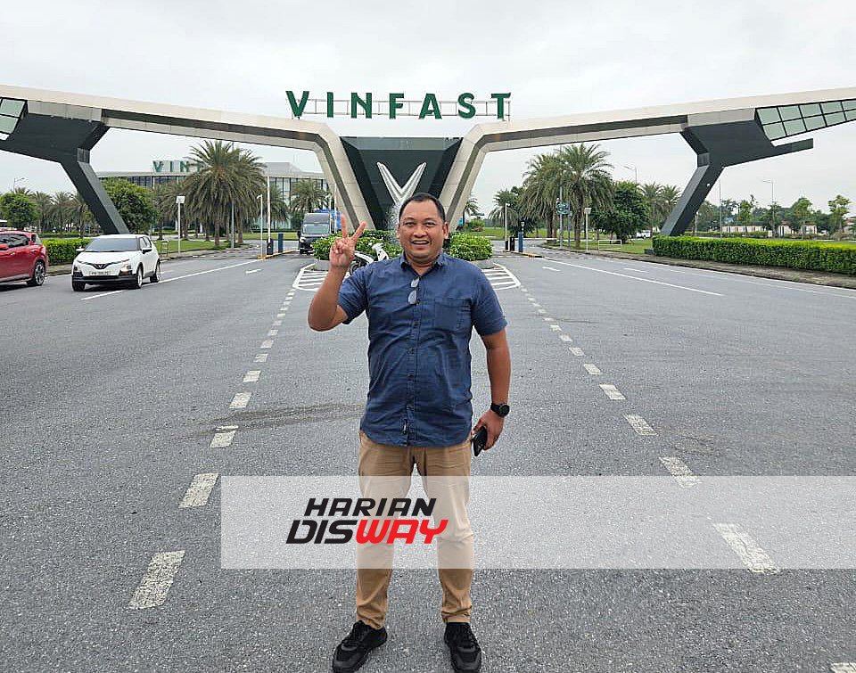 Jurnalis Harian Disway Tomy Gutomo di depan pabrik VinFast di Vietnam.-Foto: Tomy Gutomo-Harian Disway-
