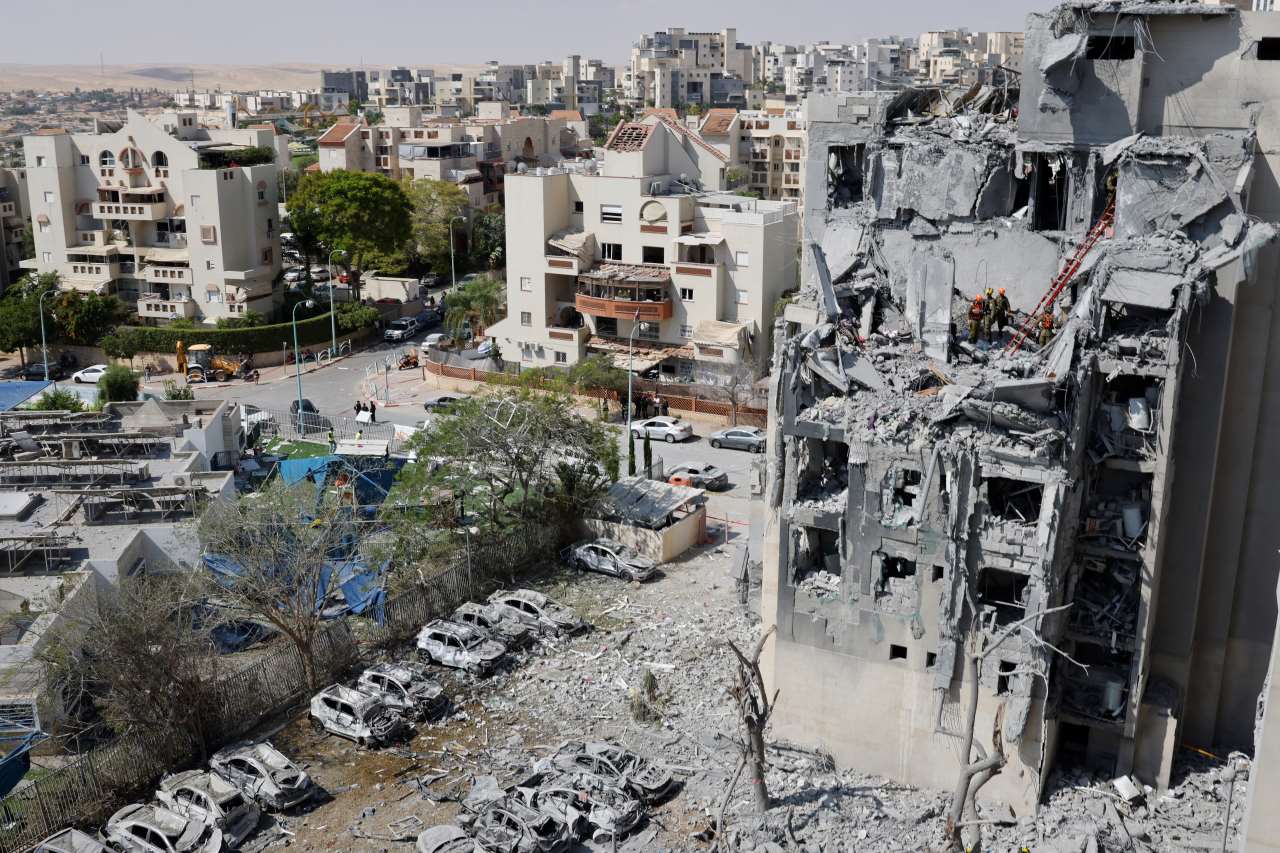 Petugas darurat memeriksa kerusakan yang ditimbulkan oleh serangan rudal Iran terhadap sebuah bangunan di Beersheba, Israel selatan, pada 24 Juni 2025. Israel menyatakan pada 24 Juni bahwa mereka telah menyetujui proposal Presiden AS Donald Trump untuk ge-John Wessels-via AFP