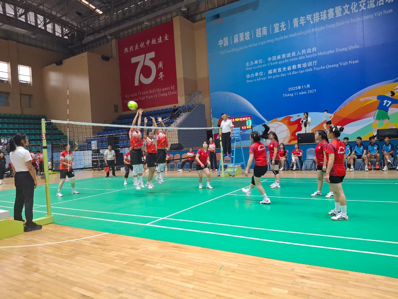Ya, itulah suasana pertandingan persahabatan bola voli yang mempertemukan Tiongkok dan Vietnam. Tepatnya, siswa SMA Malipo dan SMA Provinsi Tuyen Quang, Vietnam Utara.