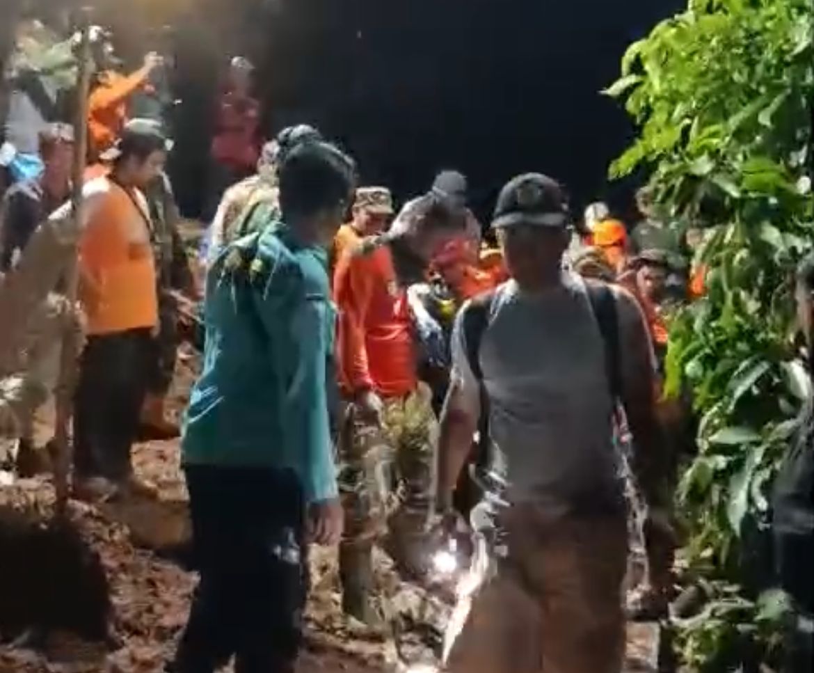Tim melakukan pencarian dan penyelamatan korban longsor di Kecamatan Majenang, Cilacap, pada Kamis malam, 13 November 2025. Dokumentasi: BPBD Kabupaten Cilacap--