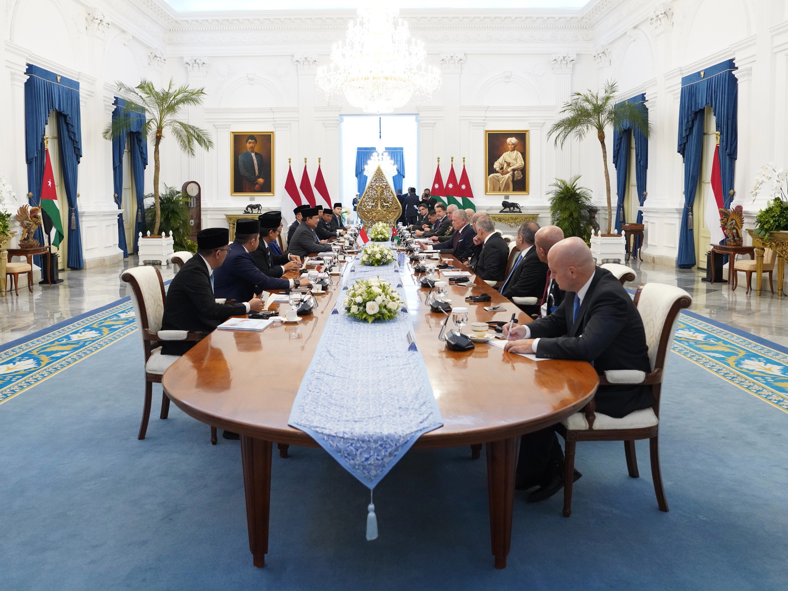 Presiden Prabowo Subianto dan Raja Abdullah II memimpin pertemuan bilateral antara delegasi Indonesia dan Yordania di Istana Negara, membahas penguatan kerja sama strategis kedua negara.--