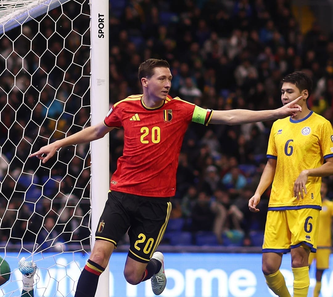 Selebrasi gelandang sekaligus kapten Timnas Belgia, Hans Vanaken, usai mencetak gol ke gawang Kazakhstan. Minggu, 16 November 2025--Instagram @uefaeuro