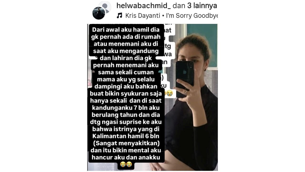 Helwa Bachmid membagikan curahan hatinya di Instagram, mengungkap kabar mengejutkan bahwa suaminya memiliki istri lain di Kalimantan saat ia tengah hamil.--Instagram @helwabachmid_