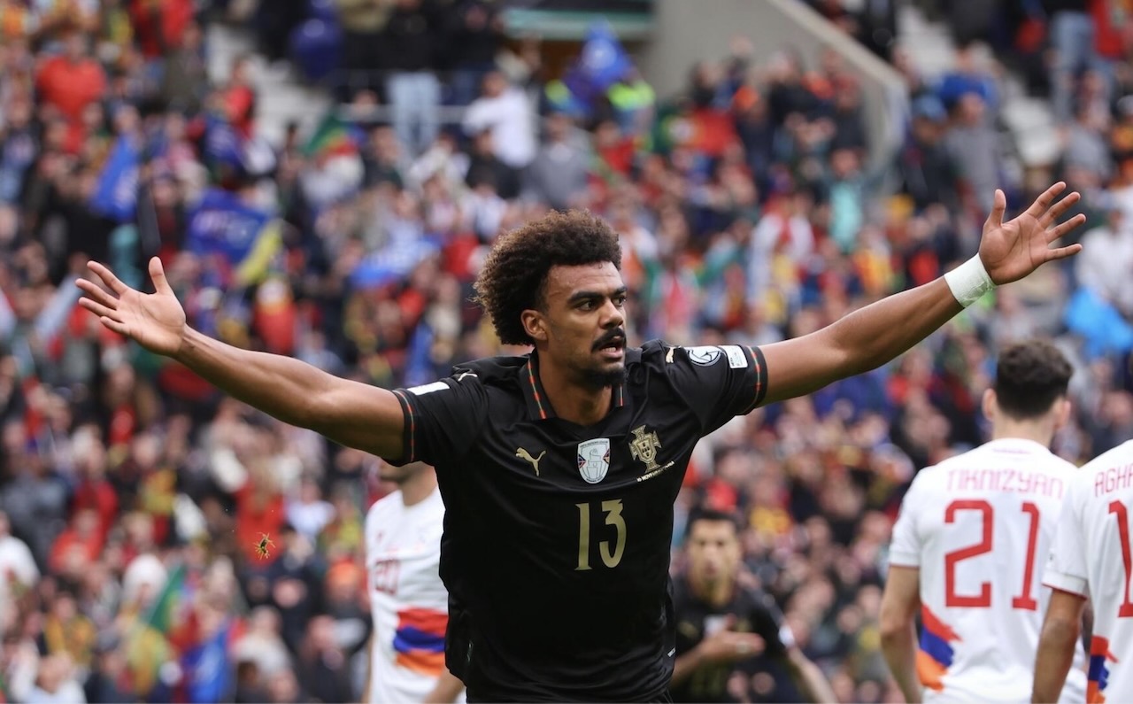 Rating pemain Portugal yang hajar Armenia 9-1, Bruno Fernandes dan Joao Neves fantastis! Foto: Bek tengah Renato Veiga mencetak gol pembuka bagi Portugal.-UEFA-