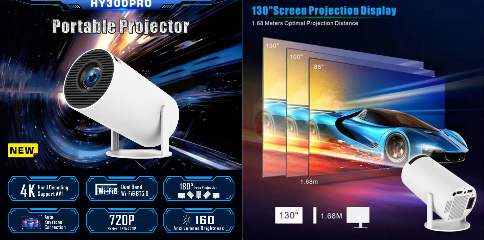 HY300 menawarkan proyeksi fleksibel dengan dukungan aplikasi streaming dan desain portabel untuk penggunaan harian. --h96tvbox.com