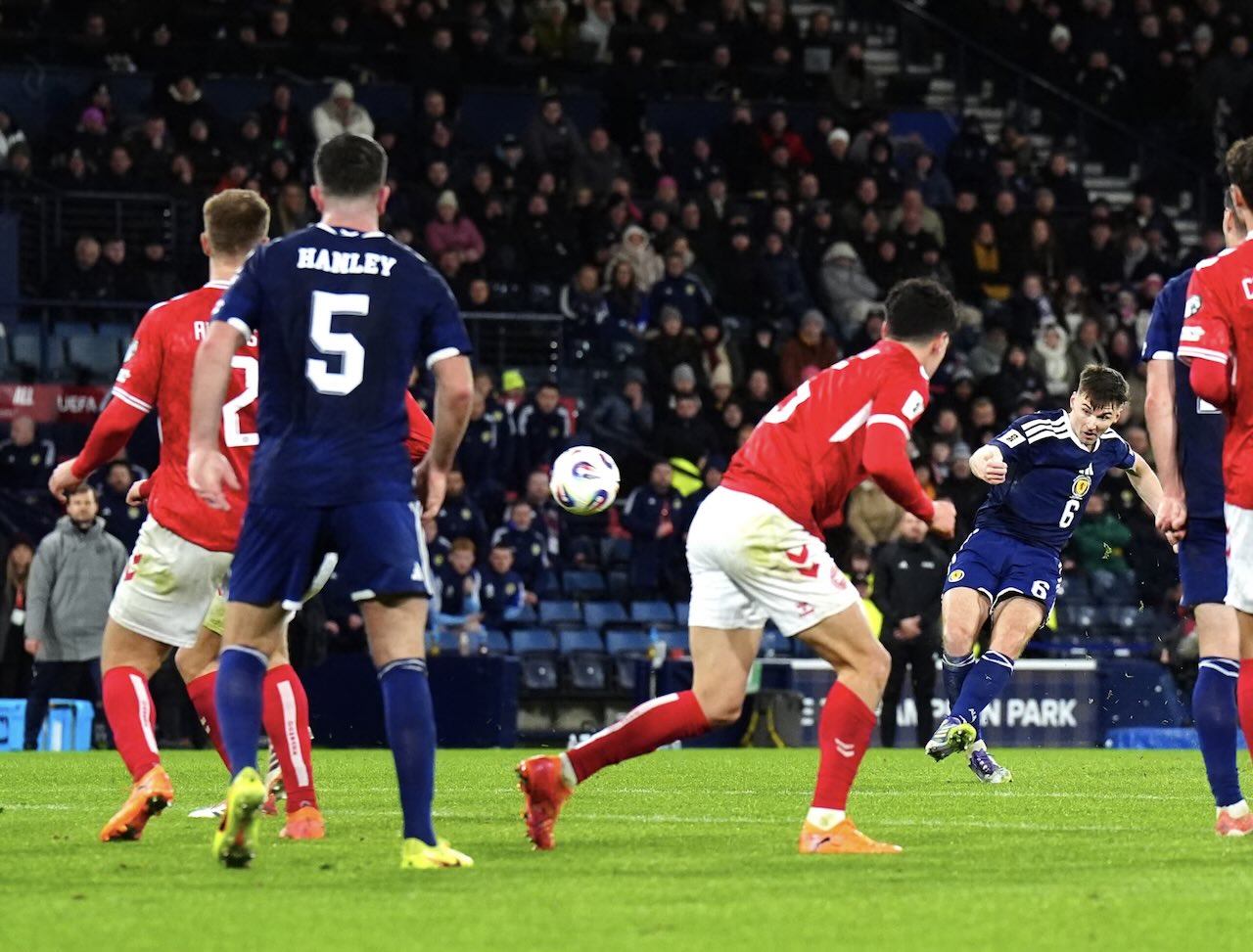 Saat laga tampak akan berakhir seri, Skotlandia menunjukkan mental baja. Kieran Tierney mencetak gol di menit 90+3 untuk mengubah keadaan menjadi 3-2.