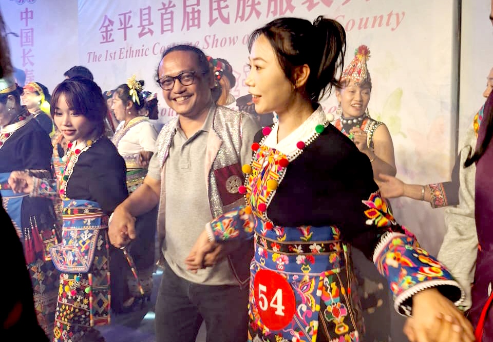 ANEKA BUSANA ETNIS tampil di panggung terbuka di Kabupaten Jinping, Provinsi Yunnan, Minggu, 9 November 2025.-Doan Widhiandono-