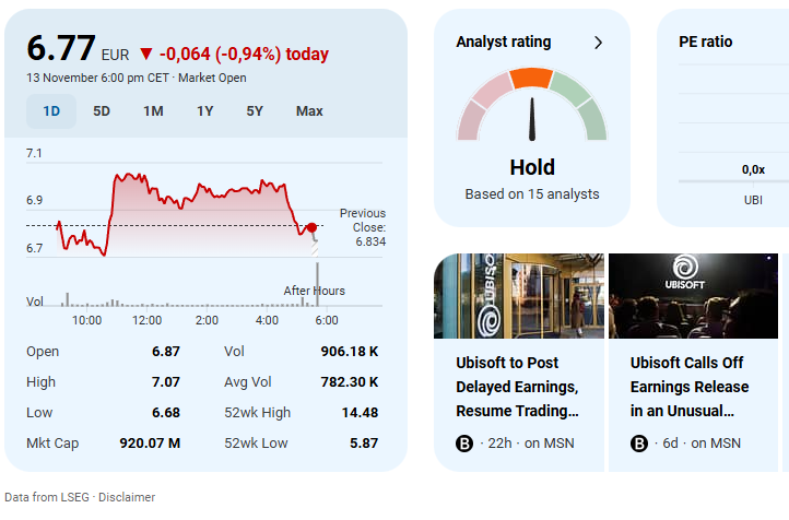 Saham Ubisoft yang masih belum dibuka akibat anjloknya harga saham mereka. --Copilot