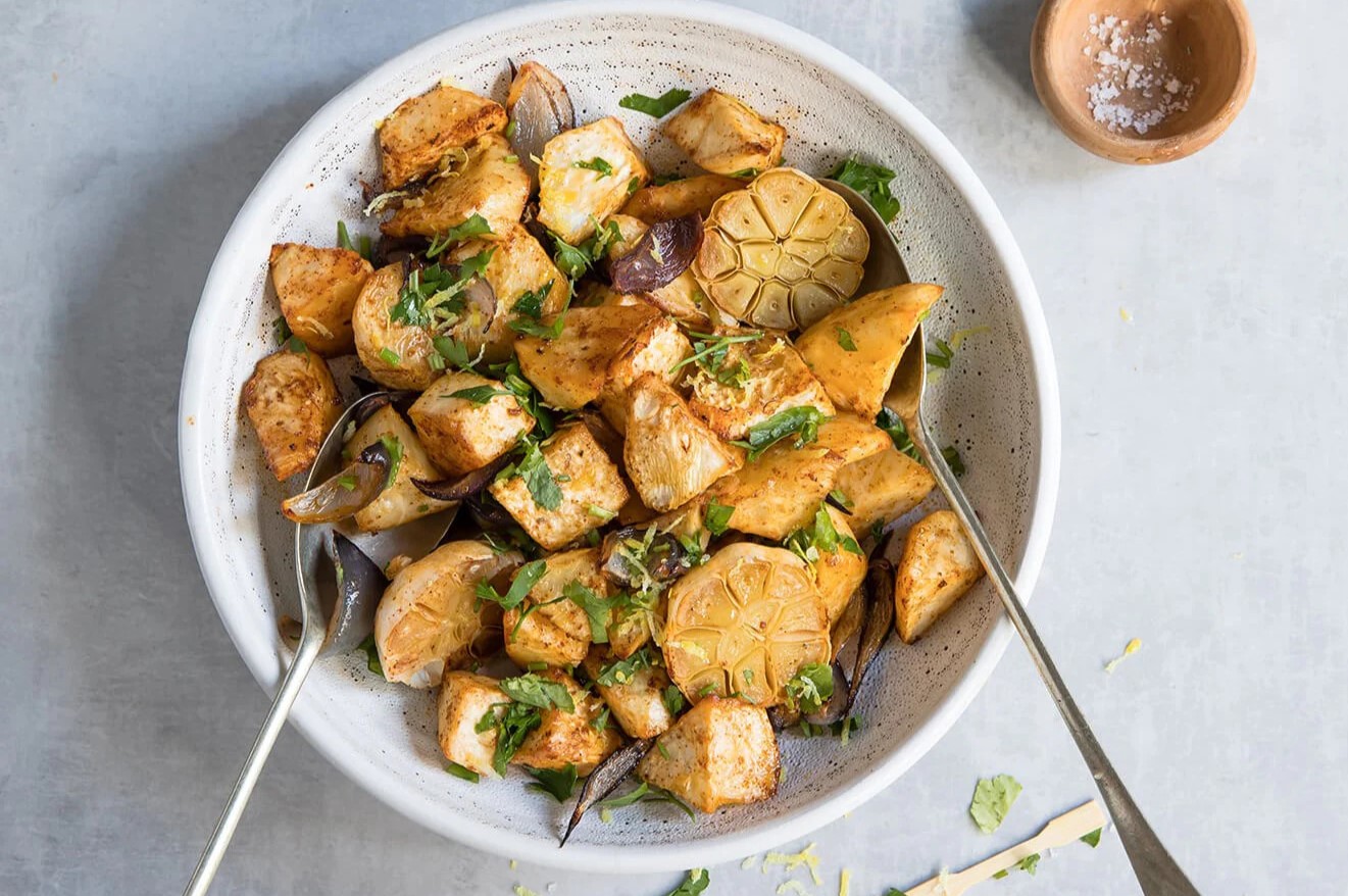 ROASTED yacon dengan feta menyajikan rasa segar sekaligus kaya nutrisi yang membantu menjaga daya tahan tubuh. --misfitgarden.co.nz