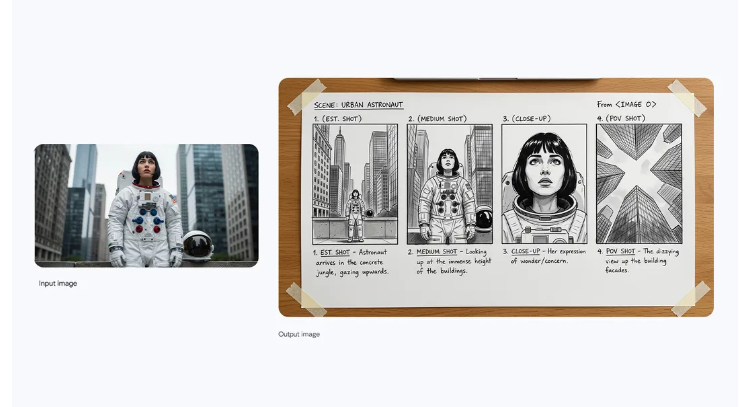 Bahkan dengan Nano Banana Pro pengguna dimudahkan untuk membuat storyboard untuk film. --Google