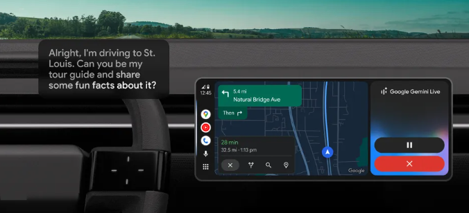 Fitur Gemini Live memberikan pengalaman percakapan yang lebih panjang, natural, dan dua arah. Saat berkendara, kamu bisa bertanya apa saja: sejarah kota yang akan dikunjungi, rekomendasi hadiah berdasarkan preferensi teman, hingga latihan pidato sebelum acara penting.