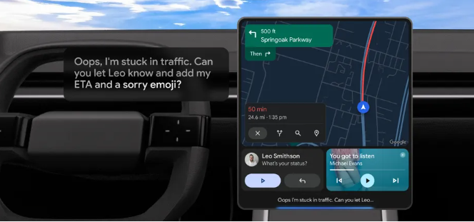 Android Auto sudah dilengkapi dengan AI Gemini, memudahkan pengendara melakukan segala interaksi tanpa mengetik. --Google