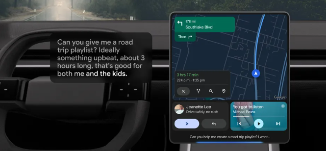 Tak perlu pusing hening di jalan, AI Gemini di Android Auto siap aturkan playlist musikmu. --Google