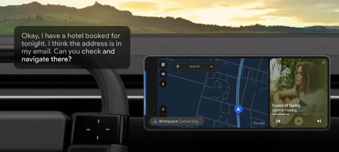 Intinya, hiburan di mobil jadi sangat personal dan bebas gangguan tangan. Semua terjadi karena Gemini memahami konteks, bukan hanya perintah statis.