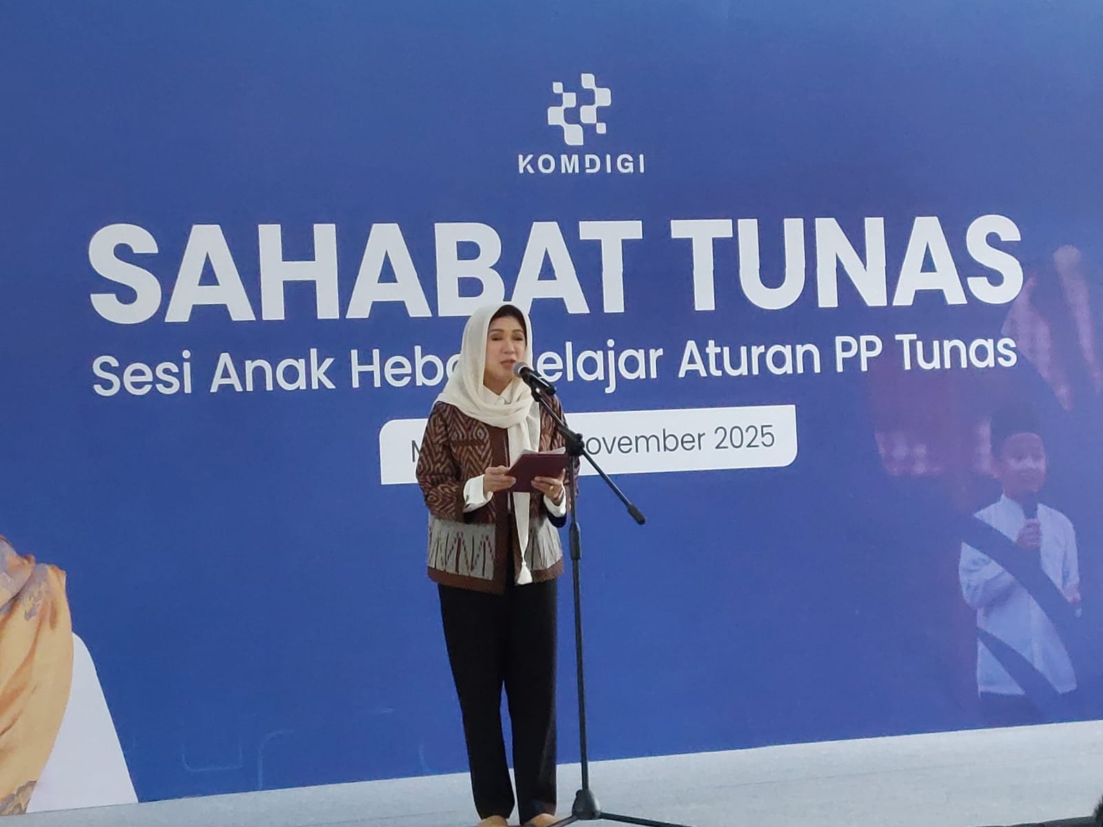Direktur Jenderal Komunikasi Publik dan Media (Dirjen KPM) Kemkomdigi, Fifi Aleyda Yahya, dalam Forum Sahabat Tunas bertema “Sesi Anak Hebat Belajar Aturan PP Tunas” di Pondok Pesantren (Ponpes) Bahrul Magfiroh, Kota Malang, Jawa Timur, Selasa, 18 Novembe-Indonesia.go.id/KPM Kemkomdigi-