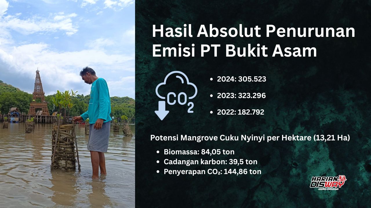Hasil absolut penurunan emisi PTBA dan dampak penguatan Mangrove Cuku Nyinyi.-Salman Muhiddin-Harian Disway